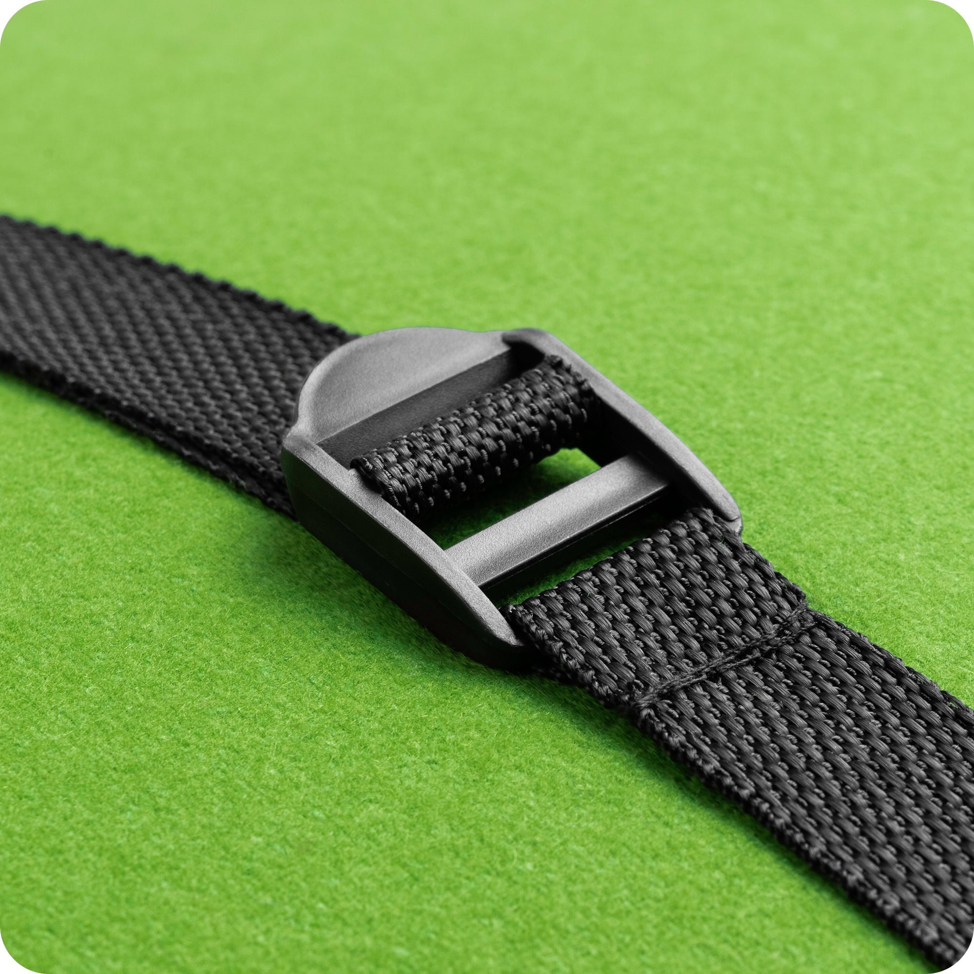 Exakte Befestigung, extreme Stabilität und kinderleichte Anbringung und Abnahme werden durch das innovative Leiterschnallensystem gewährleistet. Die robusten Gurte von Donnerberg mit einer Länge von 128 cm sind äußerst widerstandsfähig und vielseitig einsetzbar, ohne auszuleiern. Das beim Deutschen Patentamt geschützte Anti-Rutsch-System kombiniert das praktische Leiterschnallensystem mit verstellbaren und stabilen Gurten.