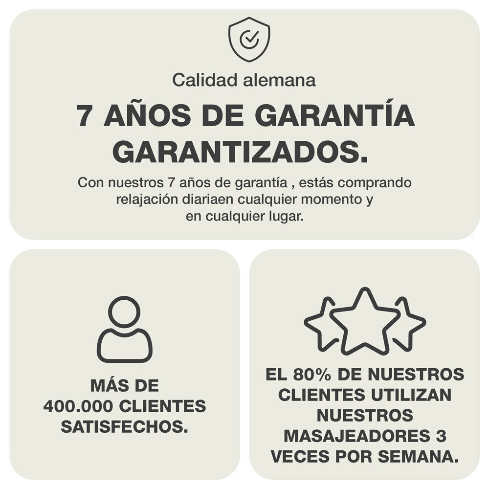 Estamos tan convencidos de la calidad de nuestros masajeadores cervicales que te ofrecemos 7 años de garantía. El potente motor no te defraudará.