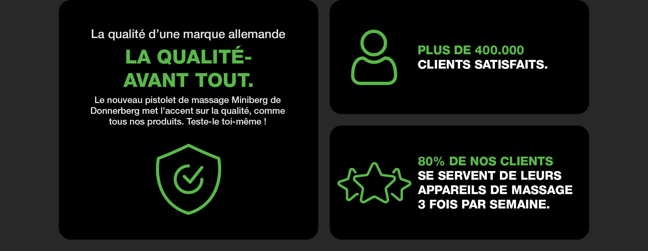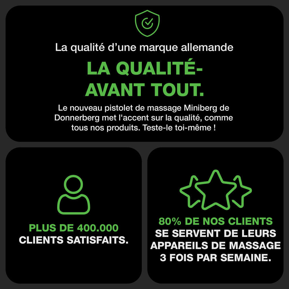 Avec le pistolet de massage Miniberg, tu as en main une solution tout-en-un pour les courbatures, les tensions musculaires et la récupération. Que tu veuilles réveiller tes muscles avant l'entraînement ou les détendre et les régénérer après l'entraînement, le Miniberg est là pour répondre à tes besoins.