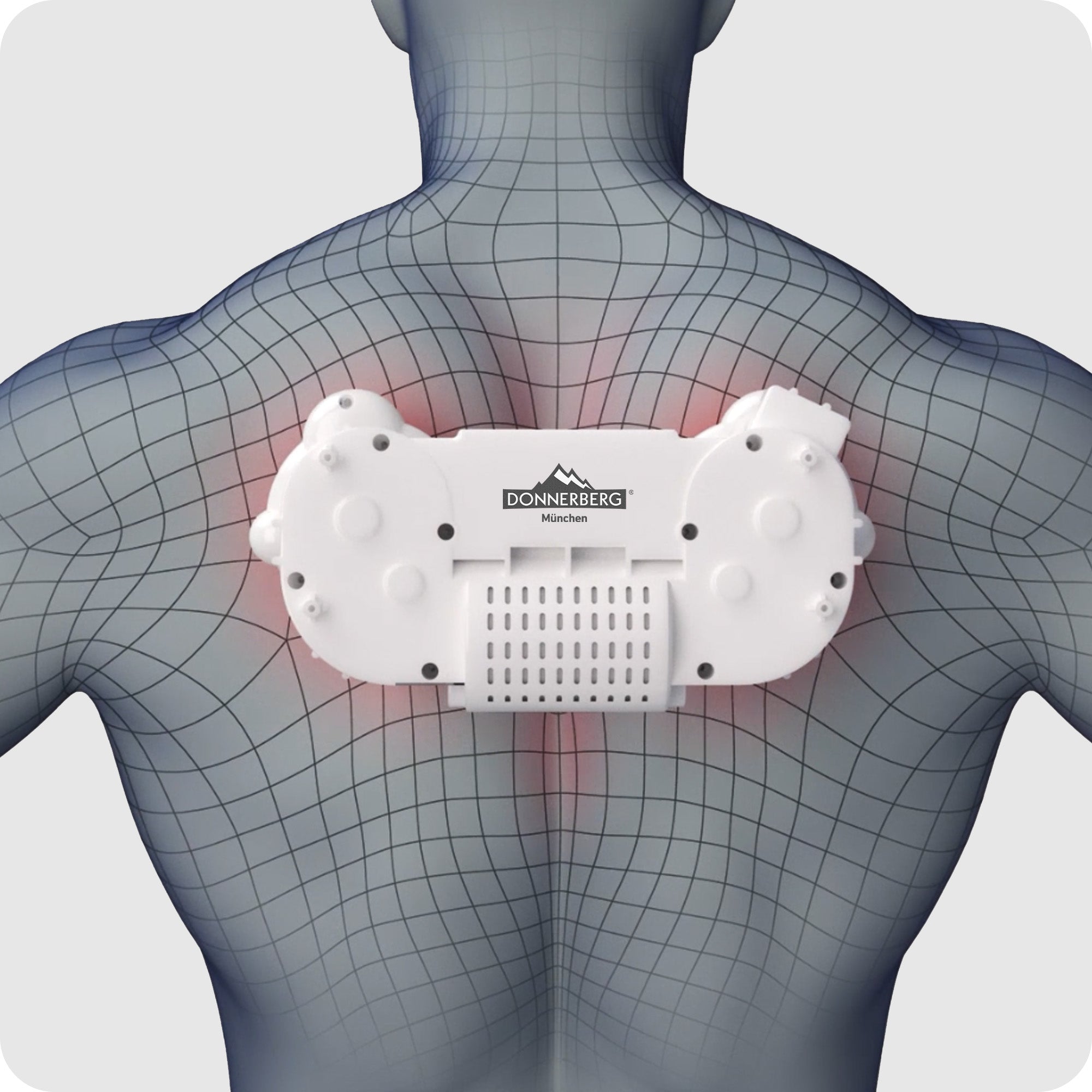 Il massaggio Shiatsu nel dispositivo di massaggio Donnerberg si basa sui principi della terapia corporea giapponese. Questa tecnica utilizza la pressione delle dita per stimolare specifici punti del corpo e meridiani per mobilitare l'energia e regolare il flusso energetico del corpo.