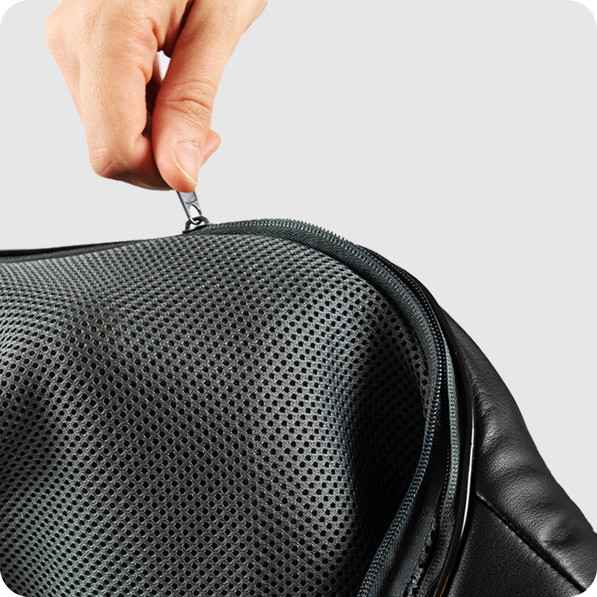 Le nostre fodere sono sostituibili e possono essere rinnovate più volte. Grazie al principio brevettato della cerniera, i rivestimenti possono essere facilmente rimossi e lavati in lavatrice a 30°. Vengono fornite altre 2 fodere di ricambio, in modo che più persone possano utilizzare il massaggiatore contemporaneamente. Un panno igienico con chiusura a velcro consente un uso igienico di piedi.